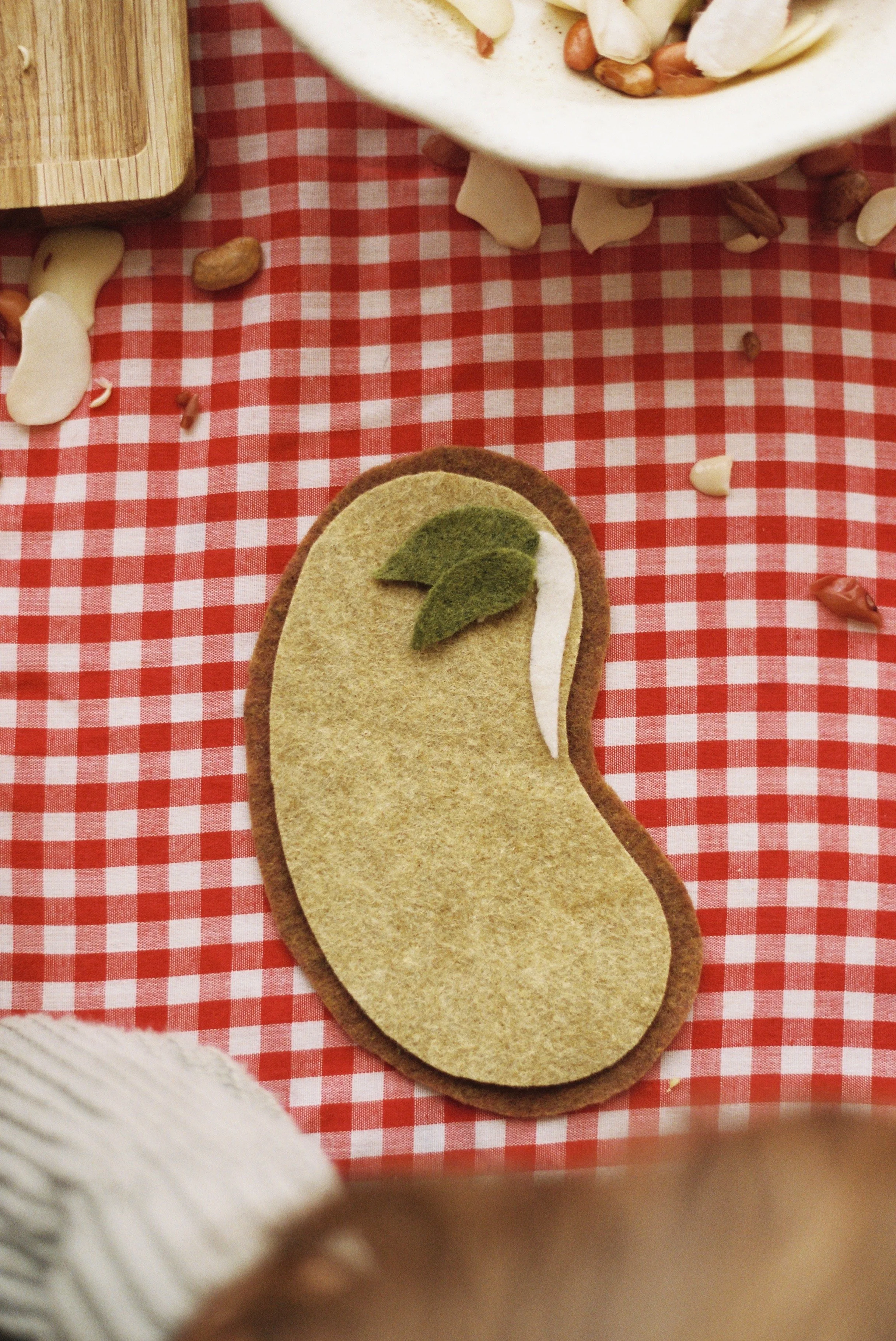 Grab the prepared felt or paper bean diagram to practice the newly gained knowledge. Follow the pattern of "I do, we do, you do." Start by demonstrating how to put it together and name each part. Then work together, and finally, let your child do it independently.