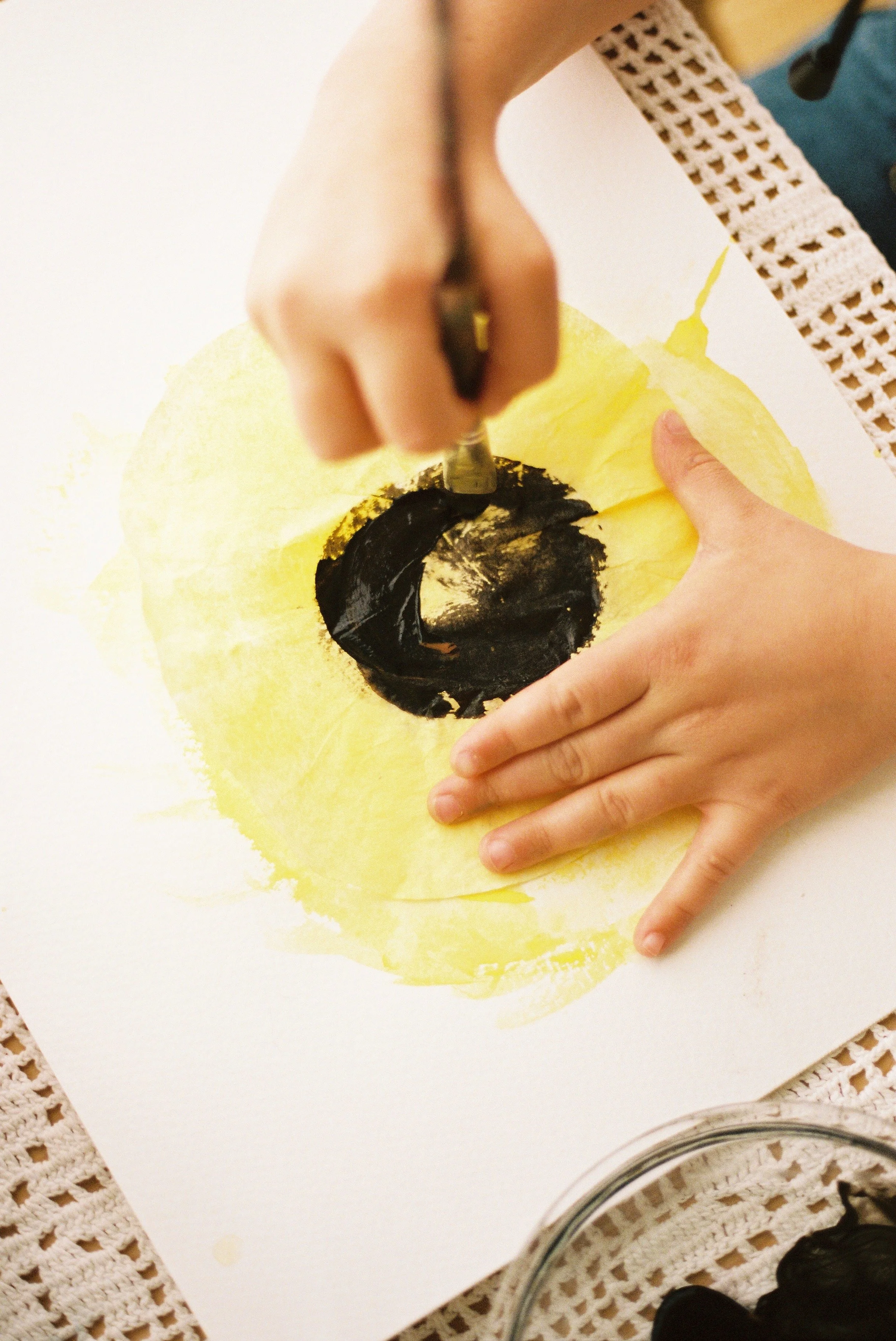 After reading, discuss new knowledge about how apples grow. Reflect on the distinct stages an apple tree undergoes throughout the changing seasons. Tell your child that you will be creating representations of the apple tree's various stages throughout the seasons.